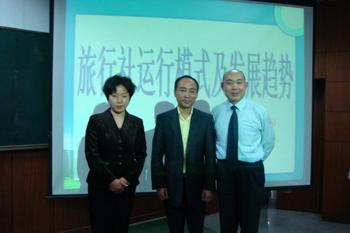 邵 先生以精彩的演讲形式讲述了全球典型的几种旅行社运营模式、目前中国旅行社的运营模式以及最佳运营模式的必要条件等,加深了同学们对旅行社业的认识。邵先生还讲述了旅行社的发展趋势,使同学们对未来就业坚定了信心,为以后就业做好准备。此外,他还强调了大学生学业生涯规划的重要性,以自己的亲身经历推心置腹地讲述给与会同学们,同学们在敬佩之余,开始思考自己以后的职业生涯道路。随后,此次讲座以便条提问的方式进行了互动环节,场面气氛热烈,邵先生针对同学们提出的问题予以圆满的回答,达到了预期的效果。