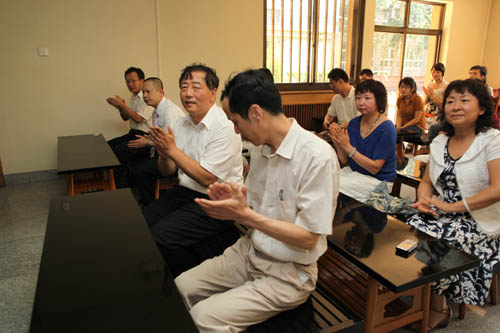 6月23日下午,天津商业大学里千家茶道短期大学2006 届日本料理学科毕业生送行茶会在“ 清风奄 ” 茶室举行,我校马三津副校长、高职与继续教育学院杨卫疆院长、垢宝印书记、国际交流处张金霞副处长及有关人员参加了茶会,杨卫疆院长向毕业生致词。
