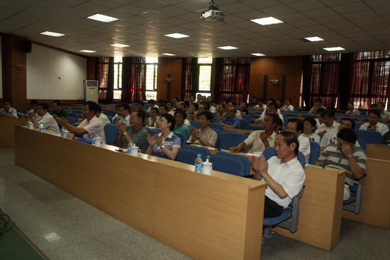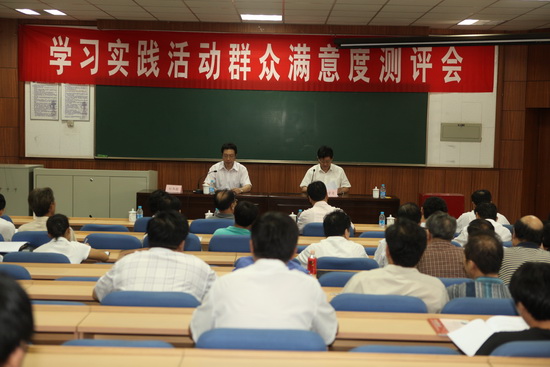 8 月 28 日上午,学校学习实践活动群众满意度测评大会在 3 号教学楼 110 室召开。市委教育工委指导检查组组长田荣信、成员吴春发出席了会议。我校党委委员、纪委委员、基层单位代表、专家学者代表、市党代会代表、市人大代表、政协委员、民主党派和无党派人士代表、教代会执委、离退休老同志代表、学生党员代表参加了会议。校党委书记陈学奇在会上通报了学校开展学习实践活动的整体情况,会议由校长刘书瀚主持。