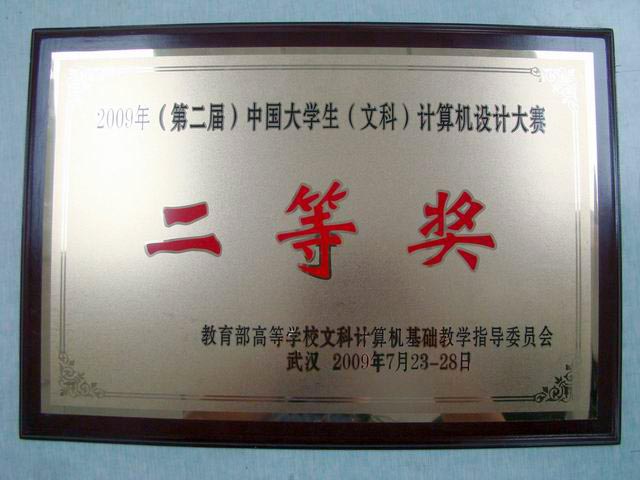 7月28日,为期五天的“2009年(第二届)中国大学生(文科)计算机设计大赛”在华中师范大学佑铭体育馆顺利落下帷幕。由信息工程学院师生组成的我校代表队,经初赛与决赛,以作品出色的技术水准和应用价值,最终荣获大赛二等奖。