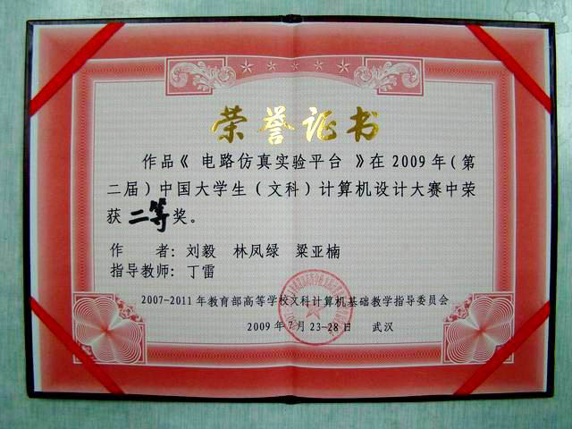 我校电子商务、信息管理与信息系统专业07级学生刘毅、林凤绿、梁亚楠在信息工程学院丁雷副教授的指导下,积极备赛、密切配合,利用课外近三个月的时间,开发研制了《电路仿真实验平台》。该仿真平台以Windows窗体为基本形式,以虚拟仪器为表现手法,运用计算机程序设计语言设计了人性化较强、较具实用价值的电路实验虚拟软件。