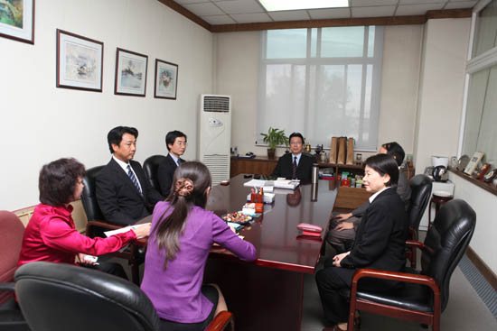 9月6 日下午,刘书瀚校长会见了日本京都文教大学西本胜己先生等 3 人,双方进行了友好会谈。