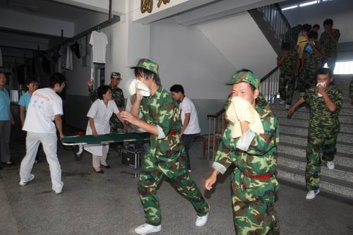 为进一步深入学习实践科学发展观,创建平安和谐校园,全面提高学校应对突发公共事件的应急处置能力,在新《消防法》实施一周年纪念之际, 9 月 15 日中午 ,我校在 2009 级学生军训期间,先后组织 6 幢新生宿舍楼 3000 多名新生进行了学生公寓应急疏散演练。校党委书记陈学奇、党委副书记杨万义、副校长马三津,现场指导了 2009 级学生应急疏散演练。