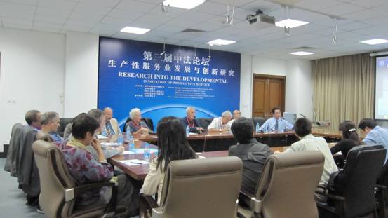 9 月 16 日晚 7 :00 第三届中法论坛相关议题继续在我校图书馆进行探讨,校长刘书瀚教授就“生产性服务业发展与创新研究”议题发表演讲,并与参会人员进行了热烈的讨论和交流。近十位法国专家、我校科研处处长张坤生教授、公共管理学院院长孙钰教授、经济学院党总支书记白玲教授、院长刘小军博士以及经济学院相关课题组成员、研究生四十余人参加了研讨。