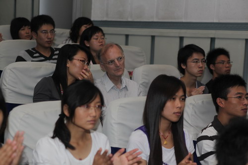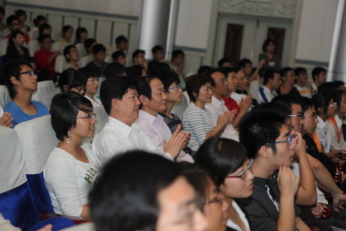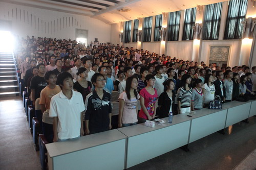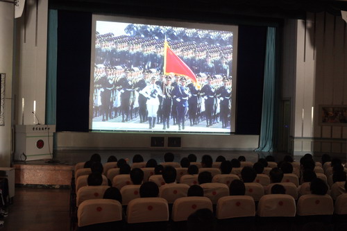 10 月 1 日 上午,我校1200余名假期留校学生在学术交流中心和科学会堂收看了中华人民共和国成立60周年庆典大会和阅兵式 。校党委书记陈学奇、副校长魏胤亭、各专业学院分管学生工作的书记、副书记、辅导员及学工部、团委全体工作人员与同学们共同收看了国庆庆典活动电视直播。