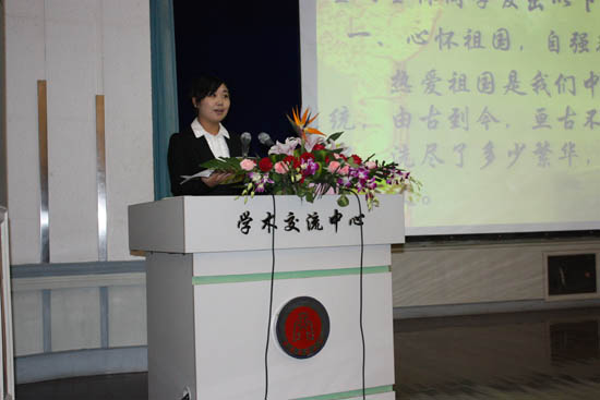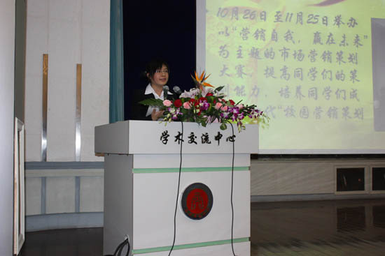 校学生会主席张环宇致开幕辞。她表示,校学生会经过精心策划,隆重推出第六届“黄金学术月”活动,希望通过此次活动扩展同学们的视野,提高同学们的综合素质,为学术发展提供更为广阔的平台,为商大今后的发展添砖加瓦!校学生会学习部部长李思霖介绍了本届“黄金学术月”的主要活动。校学生会将举办英语四、六级讲座,优秀大学生经验交流会、黄金学术月闭幕晚会。各学院也将学院特色和庆祖国六十华诞结合起来,举办形式多样、内容丰富的主题活动。校学生会副主席梁晨宣读活动倡议书,向全体同学发出以下倡议:一、心怀祖国,自强不息。二、认清使命,勇担责任。三、树立信念,感悟书香。号召同学们以第六届“黄金学术月”为契机,一起去期待明天的祖国,一起去领略书本的墨香,一起为中华之崛起而奋斗!