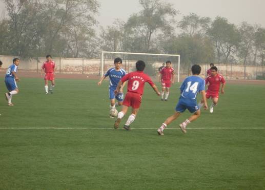 决赛在我校与民航大学之间展开,民航大学是一支老牌强队,历年来一直处在天津市高校足球界的顶峰,比赛一开始我们先失一球,比分相对落后队员们沉着镇定、没有慌乱,耐心寻找机会,终于在临近比赛结束的 15 分钟打入扳平比分的进球,我校球员在剩下的时间内斗志高昂配合巧妙,充分施展了各自的球技,几次险些破门得分,最终比赛进入点球大战,我校最终以 5 : 6 微弱劣势惜败于对手,未能蝉联冠军,虽然没能战胜对手,但在这场比赛中我校队员有攻有守,打出了自己的特点与精神风貌,充分展现出我校足球水平的深厚功底与内涵。为我校再次赢得了荣誉!