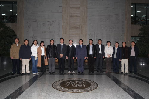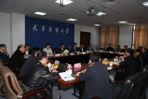 11 月 2 日下午,广东省委政研室副主任莫震、广东省教育厅副厅长叶小山一行 9 人,到我校进行调研座谈,天津市委研究室有关负责同志陪同。校党委书记陈学奇、校长刘书瀚、党委副书记史习红出席座谈会,宣传部、人事处、科研处、教务处、研究生部、高教研究所、校办公室等部门主要负责人参加了座谈会。座谈会由陈学奇书记主持,校长刘书瀚介绍了学校的基本情况、办学理念、办学特色和近年来取得的成绩。校党委书记陈学奇围绕贯彻学校办学指导思想、立足现代服务业服务地方经济社会业发展及成效进行了交流。广东省委政研室副主任莫震介绍了广东省高等教育情况和发展中面临的问题。双方就人才培养、管理创新等问题进行了深入的探讨。会后,双方合影留念。