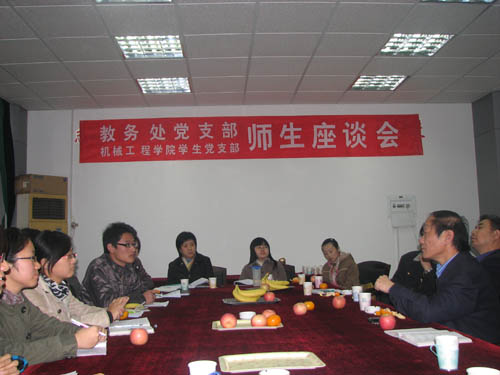11 月 4 日 下午,教务处党支部和机械工程学院学生党支部以“学管结合 师生互动 共谋发展 营造良好学习氛围”为主题举行了师生座谈会,参加座谈会的有教务处党支部成员魏胤亭副校长、机关党委白洪文书记、教务处于义良处长、王泓副处长、各科室负责老师以及机械工程学院党总支书记李勤国、相关辅导员、学生党员共计 30 余人。王泓主持了座谈会。