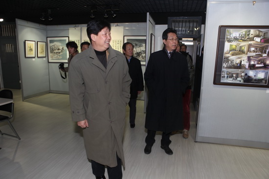 11 月 17 日下午2:00点 ,学校领导陈学奇、刘书瀚、史习红、魏胤亭前往艺术学院参观了该院师生艺术设计作品展览。领导们先后参观了教师们的绘画及一些获奖的标识、标签、建筑、零件作品的设计原图,还看了学生们的一些优秀的设计作品和学生们到外景地现场写生作品及一些基础素描和摄影作品。另外,参观了学生们上课的教室和上课用的教具,学校领导的关心使艺术学院师生受到很大的鼓舞。参观后学校领导与艺术学院领导就学院的发展方向及学科、专业建设工作进行了交流和座谈 。