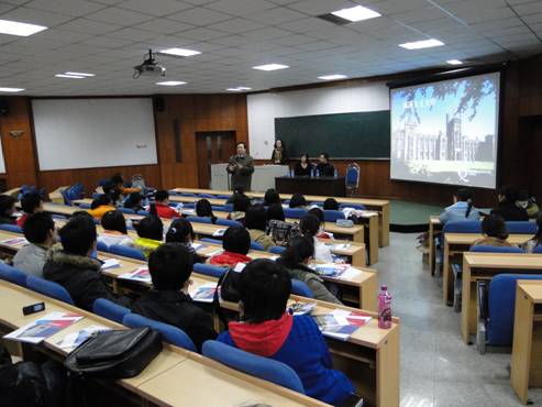 会后,女王大学官员在教学楼 3-110 教室举办了留学讲座,对女王大学接受我校学生留学作了详细的介绍,并与学生进行了沟通。