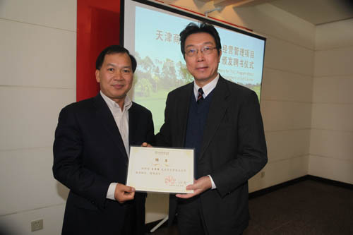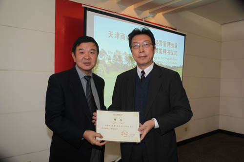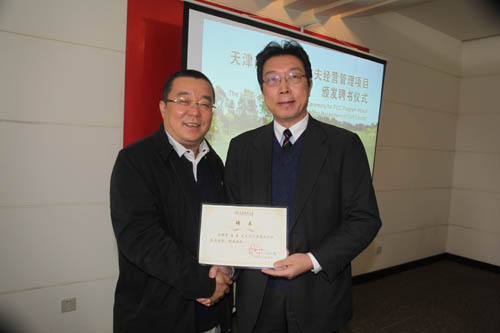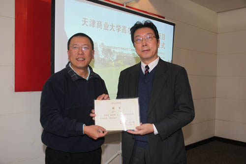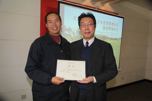 最后,我校刘书瀚校长为外聘专家张强、王清明、余荣熙、吴克祥、王月颁发了聘书,聘请他们为天津商业大学客座教授,成为天津商业大学高尔夫经营管理方向教学团队的重要成员。
