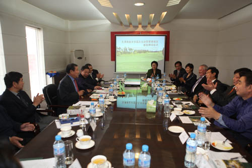 会议在友好的气氛中充分探讨了如何在现有中美酒店管理专业合作项目的前提下进行高尔夫经营管理方向的合作。刘书瀚校长在发言中强调了学校的三大发展战略、办学指导思想和人才培养定位。他说:学校建立高尔夫经营管理专业方向,是符合学校人才培养定位和天津乃至国家经济社会发展的需要,是学校主动适应社会需求的新举措。他特别感谢王述祖主任对该项目的策划、支持和督促。感谢业界老总们真诚合作与帮助。感谢 FIU 的 JOE WEST 博士和 FIU 中国项目主任卢朋博士为了酒店项目的合作所付出的不懈努力。刘校长表示:要努力将高尔夫经营管理项目做好。刘校长对该方向的办学前景充满信心,期待着在不远的将来,在高尔夫球场见到我们培养的 CEO 。