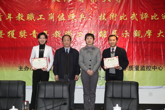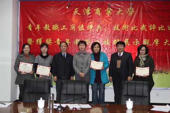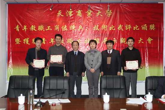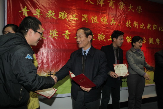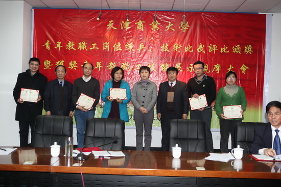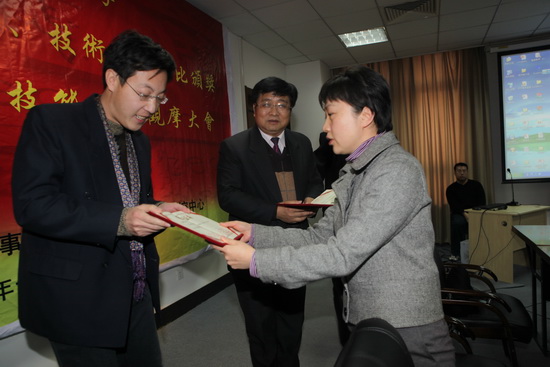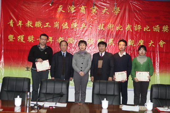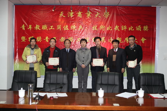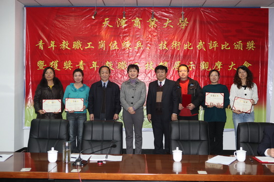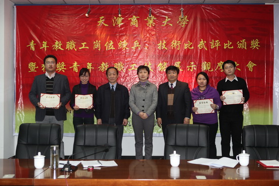 12 月 16 日 下午,我校青年教职工岗位练兵、技术比武评比活动颁奖暨获奖教职工技能展示观摩大会在图书馆报告厅举行,校党委副书记史习红、副校长魏胤亭、校长助理、人事处处长黄作良、校党委宣传部部长史瑞杰、校工会副主席宋树发出席表彰会并讲话。各分会主席、参赛青年教师和管理干部及青年教职工代表 100 余人参加了表彰会。会议由校工会副主席宋树发主持。校长助理、人事处处长黄作良宣读获奖名单,校党委宣传部部长史瑞杰代表主办单位总结比赛情况。
