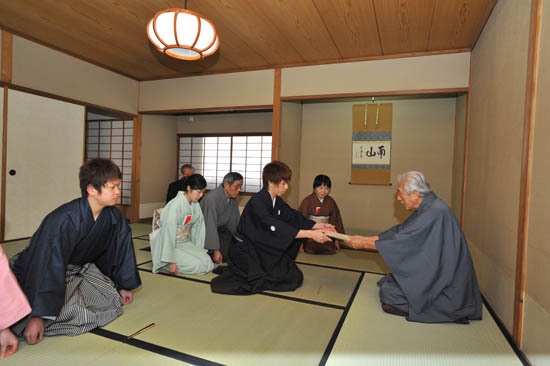 大宗匠先生为学生颁发茶道等级证书