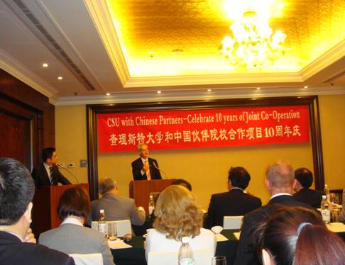 查理斯特校长 Ian Goulter ,行政副校长 Lyn Gorman ,国际商务与合作学院院长 John Atkinson ,国际关系办公室主任 Kirsty Oke 专程来到上海参加会议。教育部留学服务中心白章德主任、国际合作处车伟民处长、云南财经大学汪戎校长、长春财经大学宋冬林、扬州大学副校长焦新安也专程赴沪参会。相关院校主管国际教育的部门负责人参加了会议。