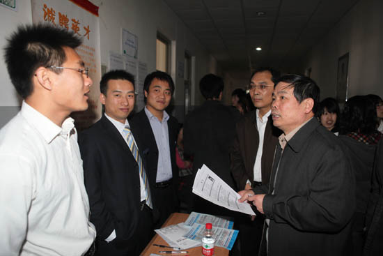 4 月 7 日 下午,我校 2010 届毕业生春季校园招聘会在 3 号教学楼隆重举行。校党委副书记杨万义、校纪委书记路波亲临招聘会现场,了解企业招聘情况,并与应聘学生亲切交谈。