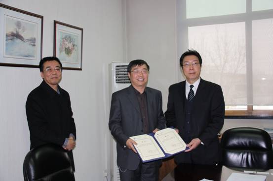 刘书瀚校长为东丽区科委主任、科协主席和知识产权局局长田先钰博士颁发兼职教授聘任书