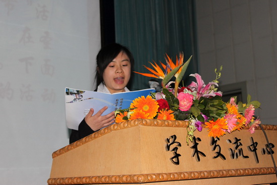 开幕式在以“读书励志”为主题的 DV 展演中拉开序幕。校学生会主席张环宇致开幕辞。她表示,在三十年校庆之际,应进一步树立我校学术活动品牌,弘扬我校浓厚的学术之风。本届读书节应着重在提高活动的参与度、加强活动的专业特色化、增强活动的时代性等方面下功夫。校学生会学习部部长李思霖介绍活动安排。校学生会副主席徐源宣读了活动倡议书,倡议大家一起来读书,广泛读书,学会读书,努力营造我校良好的读书氛围。随后,天津市学生联合会执行主席于宝刚发言,他指出“读书节”这一品牌活动在天津市各高校中拥有较高知名度,希望同学们以书籍为伴,以读书为友,立志终身读书。