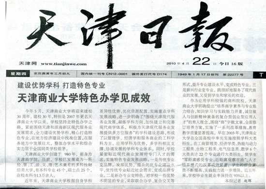 天津日报以“建设优势学科 打造特色专业”为题报道我校办学情况(图文)
