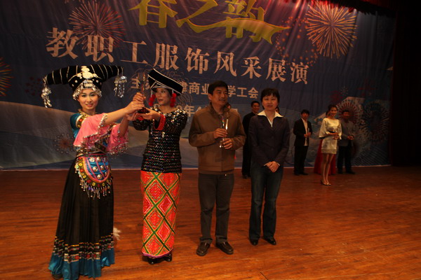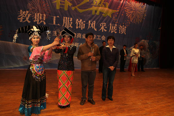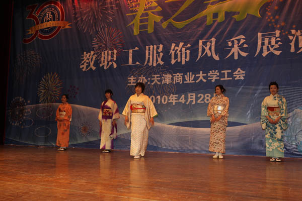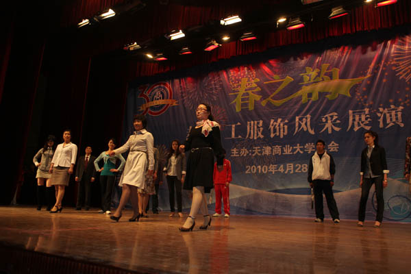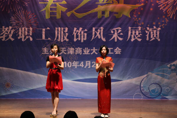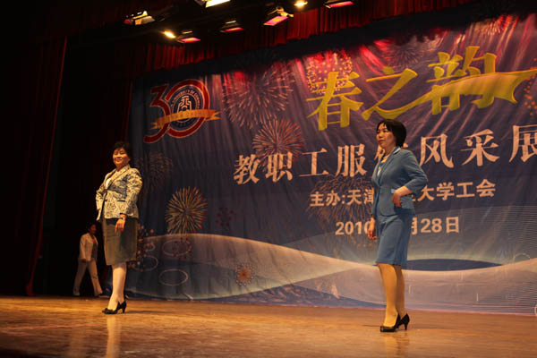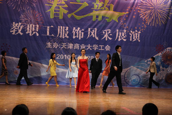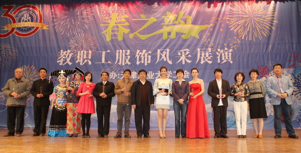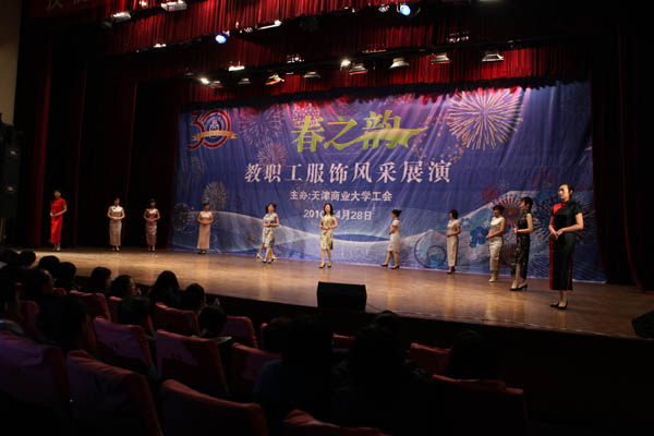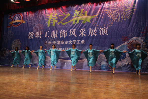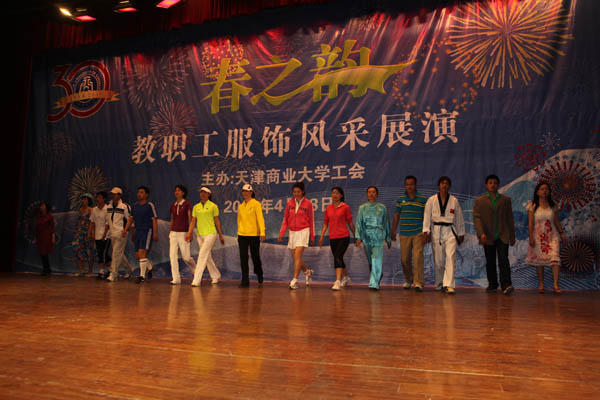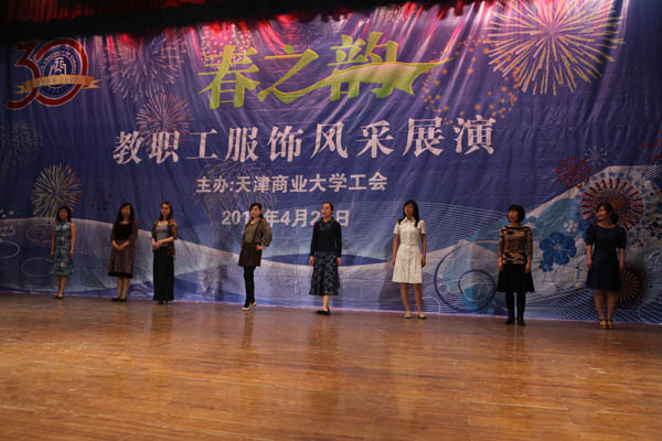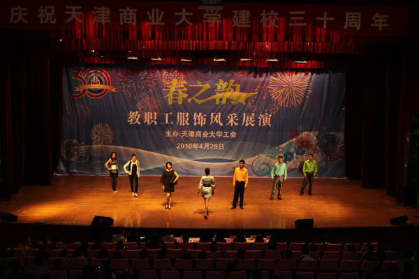 踏着春天的脚步我们迎来了建校 30 周年,广大教师为我校的发展辛勤耕耘、硕果累累。为表达喜迎校庆的愉悦心情,全体教职工用服饰的风采展现天商教师的精神风貌。由校工会举办的 “ 春之韵 ” 教职工服饰风采展演,于 4 月 28 日下午在校科学会堂隆重举行,校党委副书记史习红、校长助理黄作良、李真、寇小萱及各学院、党政部门领导出席。全校教职工 600 余人观看表演。