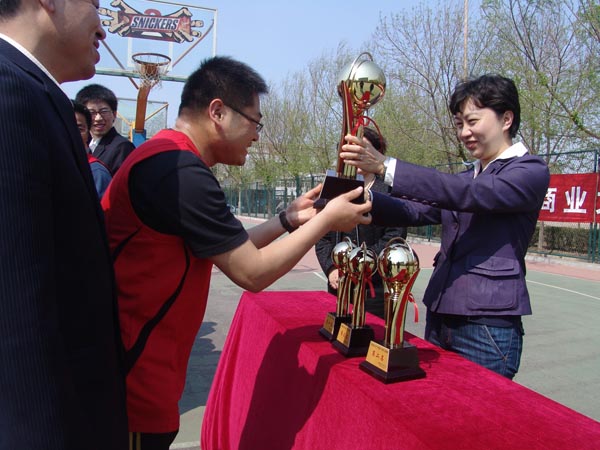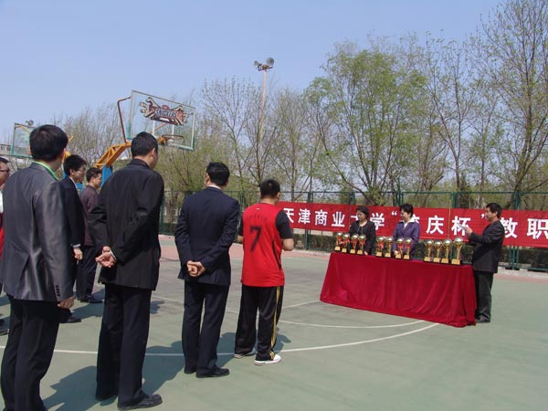 由校工会主办、校篮球协会协办的天津商业大学“校庆杯”教职工篮球比赛于 4 月 29 日圆满结束。校党委副书记、工会主席史习红、工会常务副主席宋树发、女工委员会主任卫弘为获奖单位颁发了奖杯并合影留念。此次活动是在我校建校“三十”周年即将到来之际,营造喜庆气氛,展示了我校教职工蓬勃进取的精神。