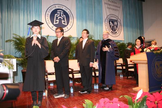 中国外商企业投资协会副会长王述祖在致辞中对每一位毕业生顺利毕业表示祝贺。希望他们能以优秀的品质、扎实的知识和良好的职业素质走向自己的工作岗位,成长为优秀的酒店管理人才,并且希望我校与美国佛罗里达国际大学的合作能结出更丰硕的果实,为发展中国家和发达国家的合作带来更深刻的启示。