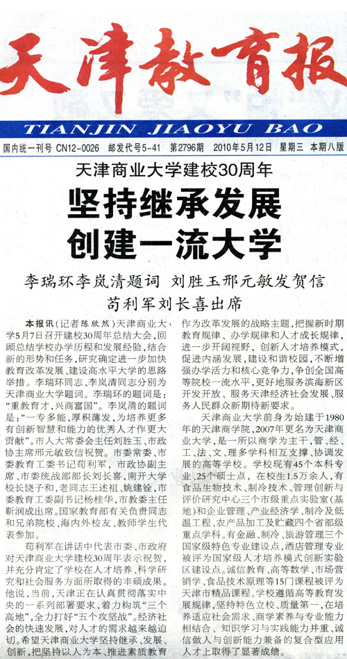 天津教育报报道我校建校30周年庆典(图文)