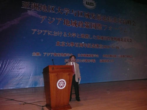 5 月 16 日 至 17 日,亚洲大学与区域发展论坛北京高峰会在北京大学百周年纪念讲堂多功能厅举行。 本次大会的中心议题为探讨高校区域责任和区域贡献问题;研讨区域社会如何依托高校智力支持,加快发展问题。