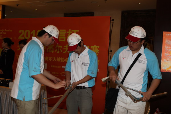 5 月 28 日,“正信杯”2010 年天津业余高尔夫巡回赛首站比赛在滨海新区滨海森林高尔夫球场开杆,我校合作学院首批高尔夫经营管理专业学生应邀为该赛事提供全程服务。