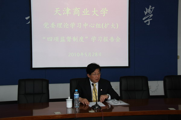 5月28日,校党委中心组在图书馆二楼会议厅举行理论学习会,采取播放音像资料的方式,组织收听收看中央党校高新民教授所做的题为《加强干部选拔任用监督,提高选人用人科学化水平》的专题报告。校党委书记陈学奇主持。党委中心组成员、各分党委、党总支、直属支部书记、机关党委所属党支部书记和机关处级以上干部40余人参加学习。