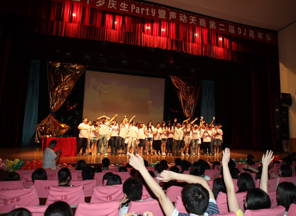 5月27日晚,校广播台台庆纪念暨“声动天商”第二届DJ 嘉年华在科学会堂举行。广播台指导教师柴桐出席了本次活动。天津人民广播电台文艺台《大话小说》节目主持人慕容、《畅想移动》节目主持人一丁应邀参加活动并献上了精彩的表演。天津市各高校广播台负责人到场同贺。当晚,天津音乐学院带来的乐队表演拉开了晚会的序幕。我校学生表演的街舞、互动魔术、相声等精彩节目依次上演。电台主持人慕容、一丁带来的即兴表演和广播台播音部的配音等节目更是几度把现场气氛推向高潮。
