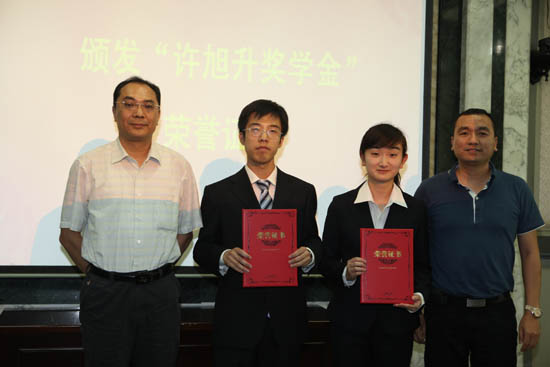 据悉,“许旭升奖学金”是我校房地产经营与管理专业 93 级校友许旭升捐赠的奖学金,也是我校第一个以校友个人名义设立的奖学金项目,于今年 5 月正式设立,旨在推动我校教育事业的发展,鼓励在校学生努力学习、拓展综合素质、培养实践能力和创新能力。奖励对象为我校在挑战杯、文化创意等科技竞赛中脱颖而出的全日制本科生和研究生。本次奖励的 10 件作品是 经校科技协会推荐,校团委审核,在我校第六届“挑战杯”创业计划大赛中获奖的作品是经“许旭升奖学金”评审委员会评选核定。