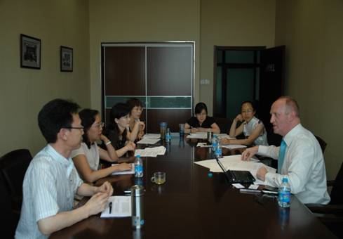 6 月 4 日 上午, John Atkinson 博士与国际教育学院寇小萱院长、郑志明书记、乔秀梅副院长和项目管理人员就中澳合作财务 - 人力资源管理专业的项目管理,课程设置,教材更新等情况进行了沟通,双方对项目今后的发展进行了详细的规划。