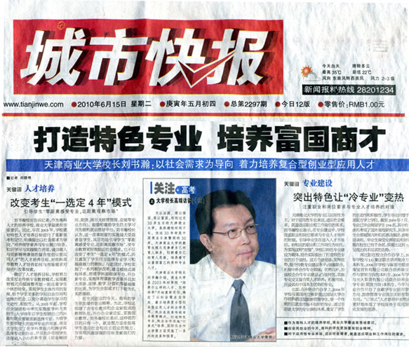 城市快报以“打造特色专业 培养富国商才”为题刊登刘书瀚校长访谈录