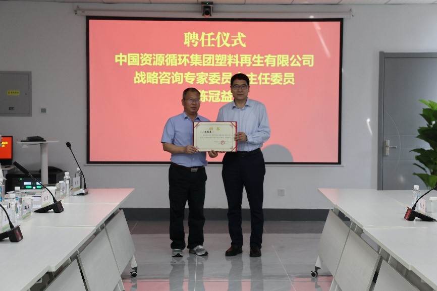 为深化合作,中国资源循环集团塑料再生有限公司特聘请陈冠益担任公司战略咨询专家委员会主任委员。座谈会上,举行了聘任仪式,刘春祥为陈冠益颁发聘书。