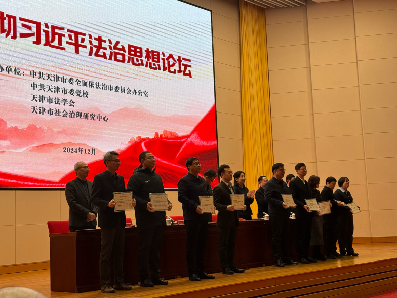 12月28日,由市委依法治市办、市委党校、市法学会、市社会治理研究中心联合主办的“学习贯彻习近平法治思想论坛”在天津市委党校举行。副校长齐恩平出席,法学院郭琪老师进行主题汇报。会议对论坛征文进行了表彰,我校师生获一等奖1项、二等奖3项、三等奖4项、优秀奖3项,法学院获论坛优秀组织奖。