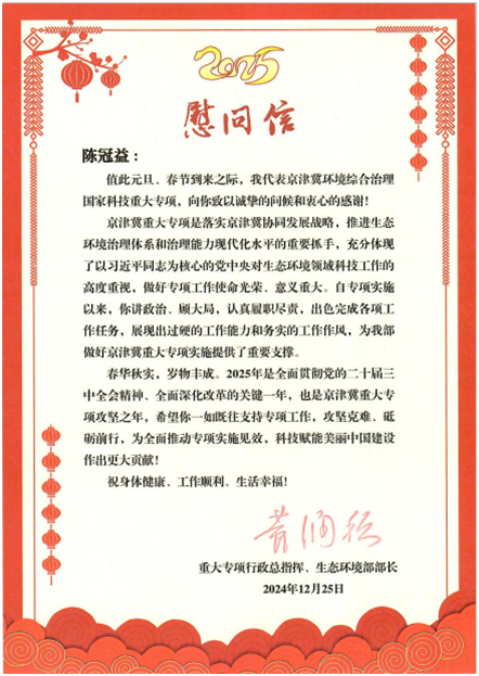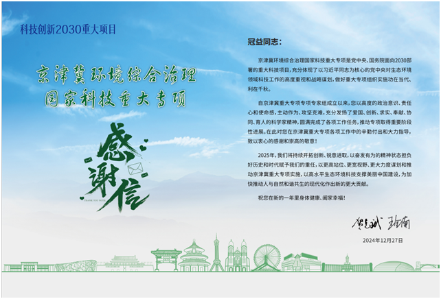信中谈到,京津冀重大专项是党中央、国务院面向2030部署的重大科技项目,充分体现了以习近平同志为核心的党中央对生态环境领域科技工作的高度重视,做好专项组织实施工作使命光荣、意义重大。